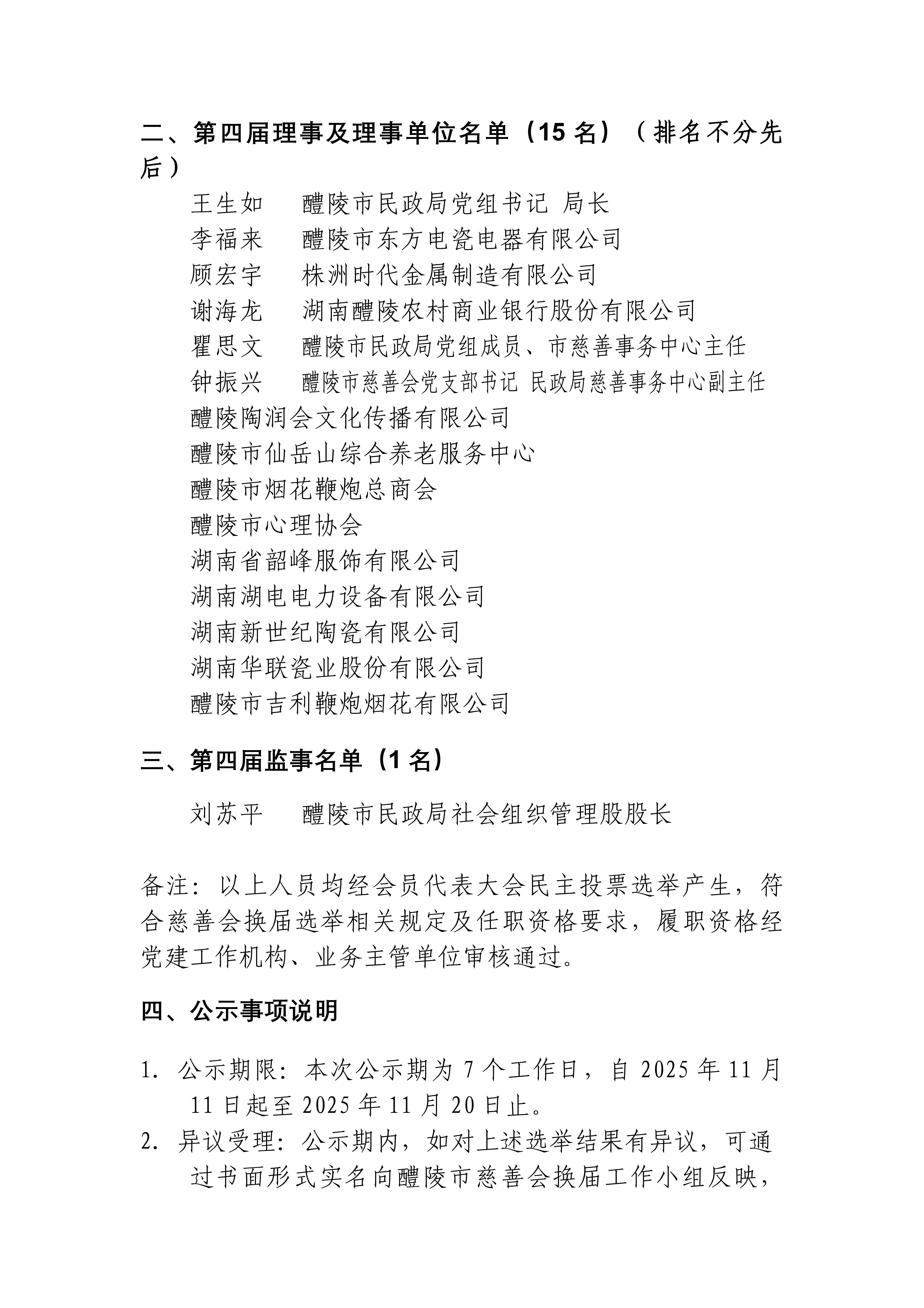 醴陵市慈善会第四届理事会换届选举结果公示